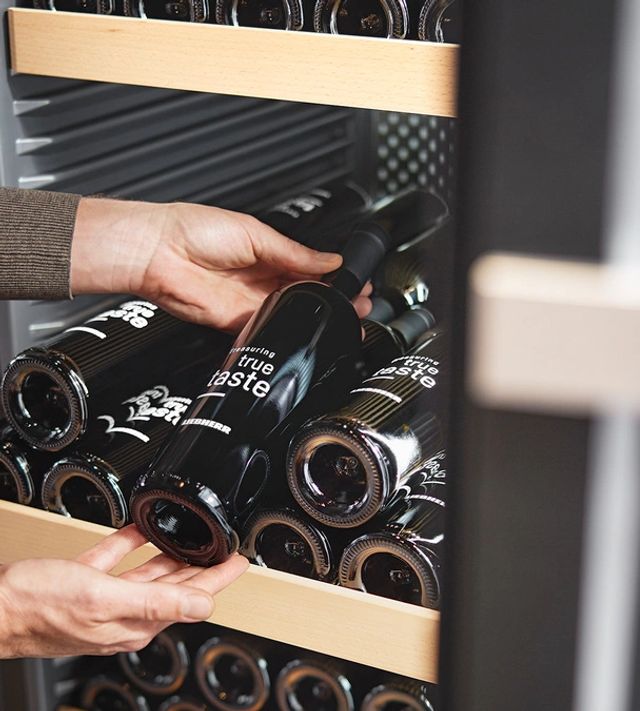 Maximale Kapazität. Ein Liebherr-Weintemperierschrank erleichtert auch die Organisation einer wachsenden Weinsammlung. Um den vollen Nutzen seiner Kapazität auszuschöpfen, wurde das Innere so gestaltet, dass Ihre Weinflaschen Hals an Hals auf den Holzregalen gelagert werden können. Das bedeutet, dass auch für ständig wachsende Weinbestände genügend Platz vorhanden ist. Also sammeln Sie ruhig weiter.
