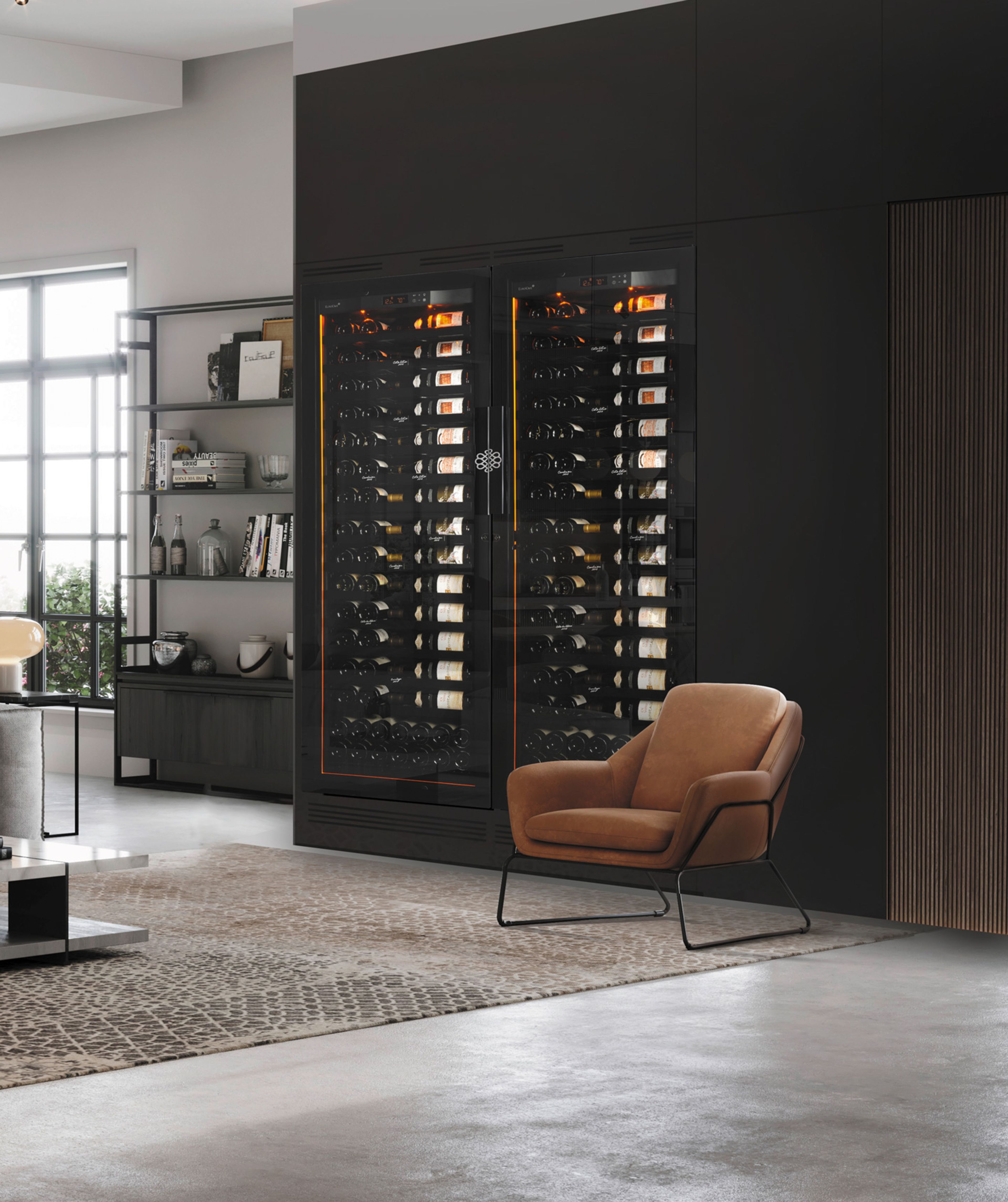 Die Wände des Schranks sind besonders dick und gut isoliert, und die Schränke sind dank besonders energiesparender Kompressoren in der Lage, bis zu 55 % weniger Energie zu verbrauchen als ein herkömmlicher Weinklimaschrank.