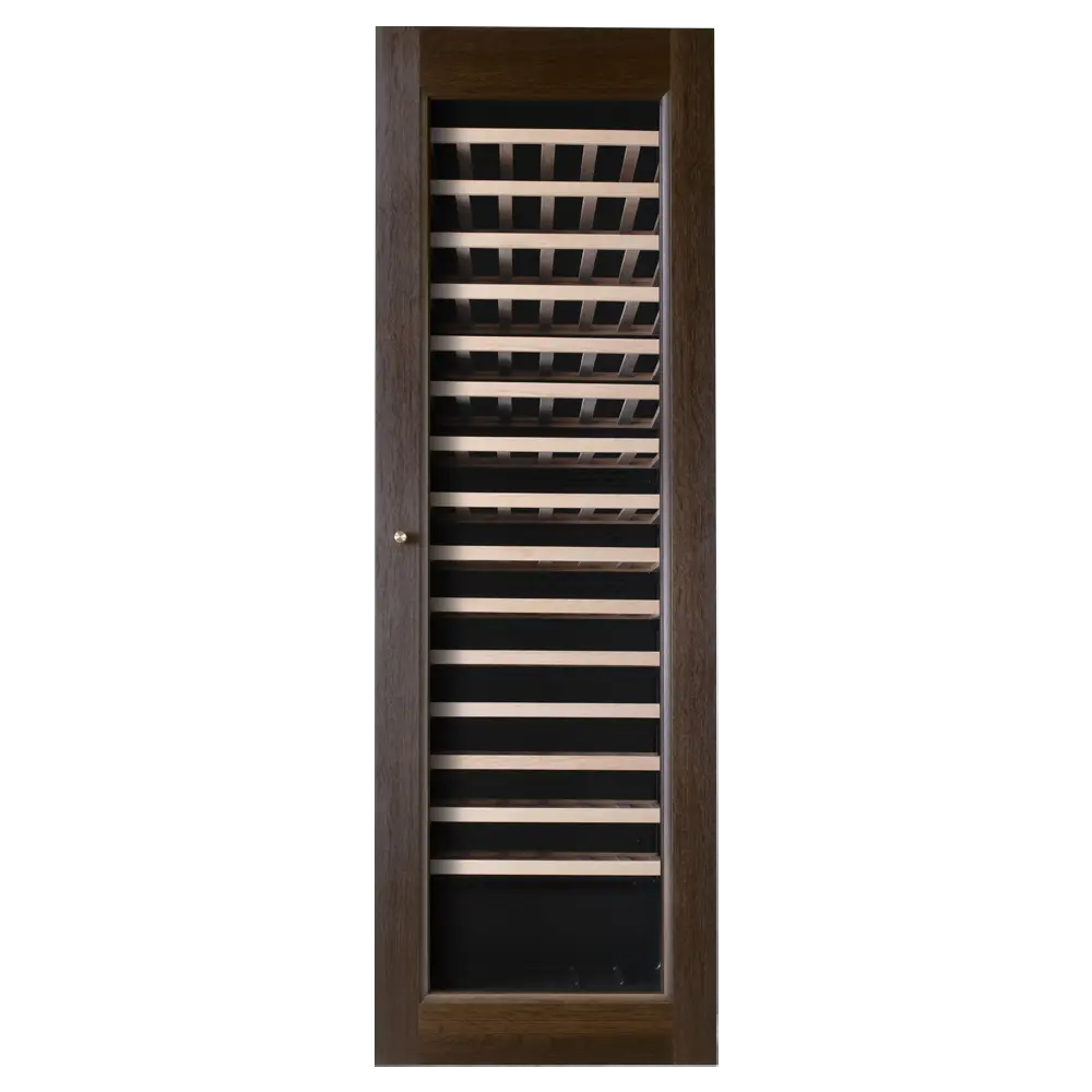 Das Besondere an diesem Weinkühlschrank ist, dass Sie Ihre eigene Front an der Tür anbringen lassen können, die zu den vorhandenen Farben, Mustern und Oberflächen in Ihrer Küche passt. Die endgültige Lösung stimmen Sie mit Ihrer Küchenfirma ab, aber Sie haben die Wahl, entweder die gesamte Tür mit einer neuen Front zu verkleiden, so dass der Weinkühlschrank mit bloßem Auge nicht zu erkennen ist, so wie Sie es von gewöhnlichen Kühl- und Gefrierschränken, Waschmaschinen und Geschirrspülern kennen, oder Sie können nur den Rahmen verkleiden lassen, damit er zum Rest Ihrer Küche passt. In jedem Fall erhalten Sie eine sehr elegante, flexible und diskrete Lösung für Ihre Küche.